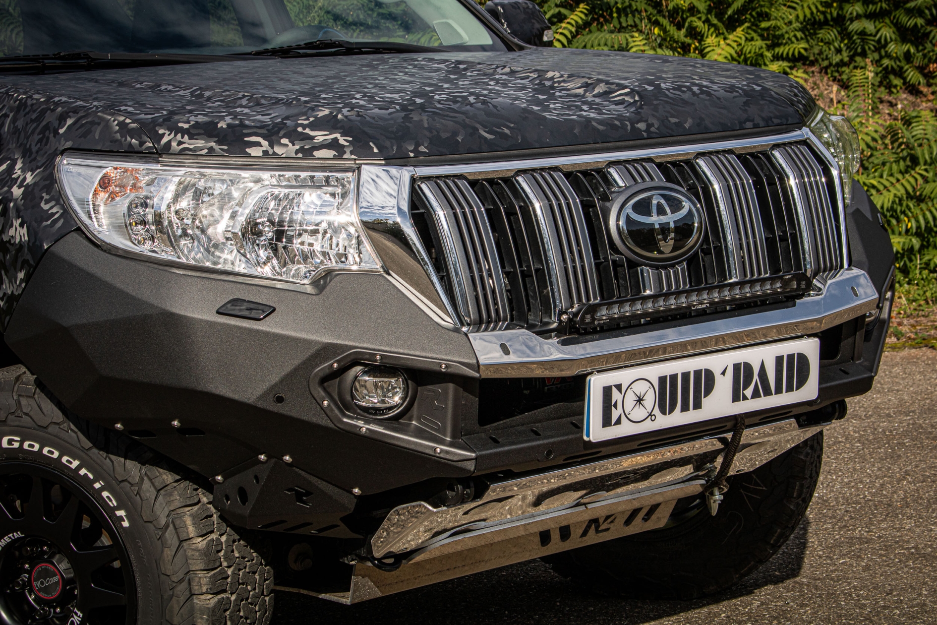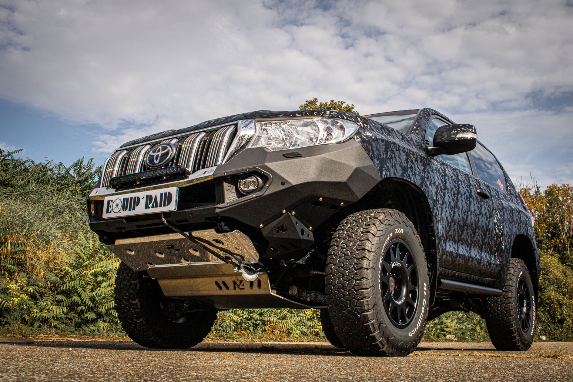 - fourni avec un blindage avant en aluminium 5 mm parfaitement adapté au pare choc et protègeant l'avant de votre véhicule