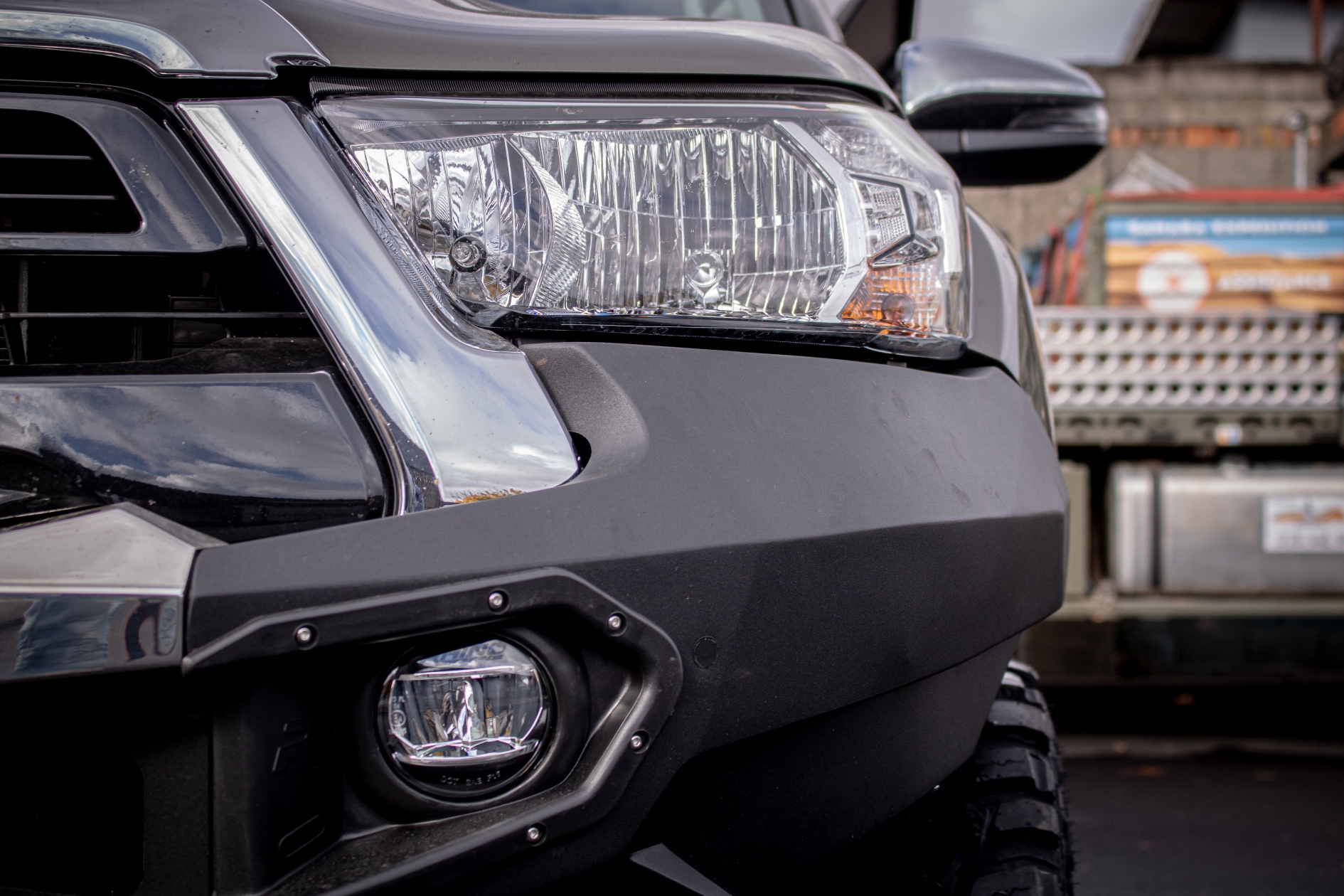- les parties latérales sont pourvues chacune d'un emplacement permettant l'installation de projecteur anti-brouillard technologie LED (livré avec le pare choc)