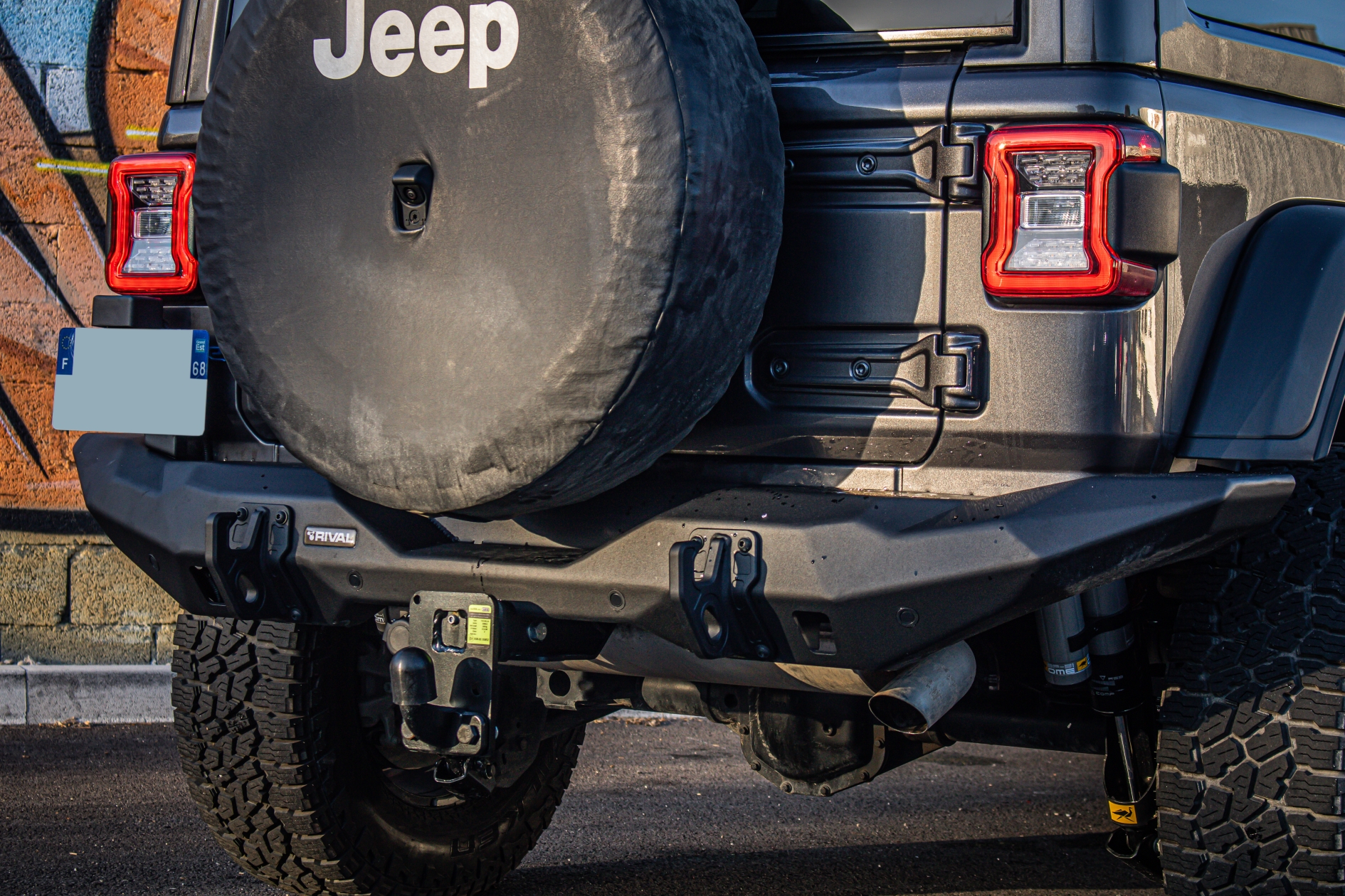 Pare chocs arrière Rival en aluminium avec revêtement epoxy noir anticorrosion pour JEEP JL ET JLU.