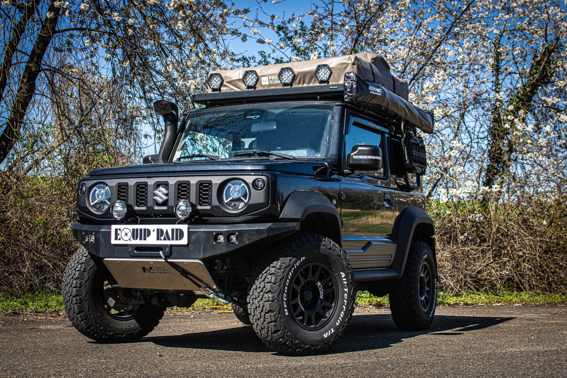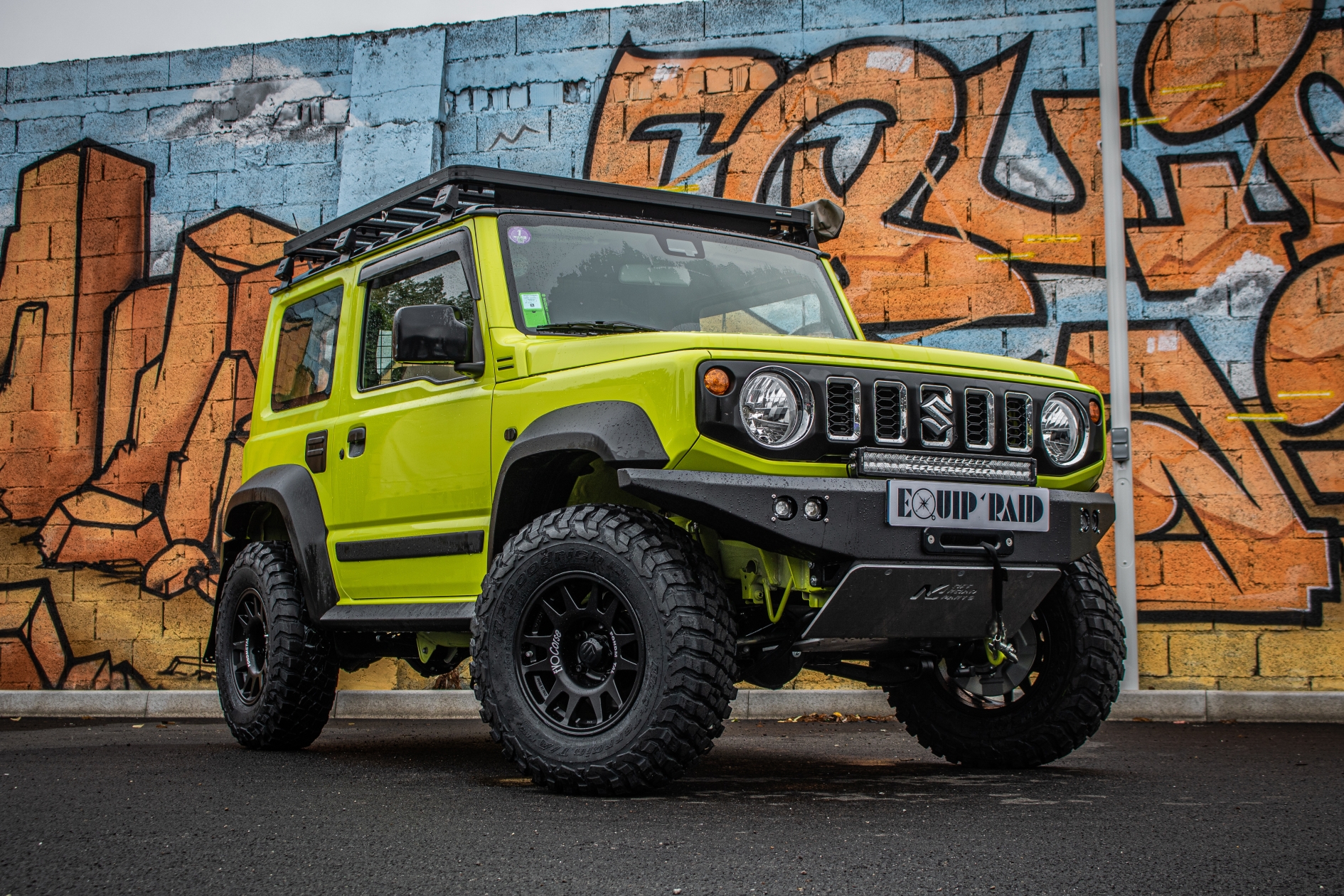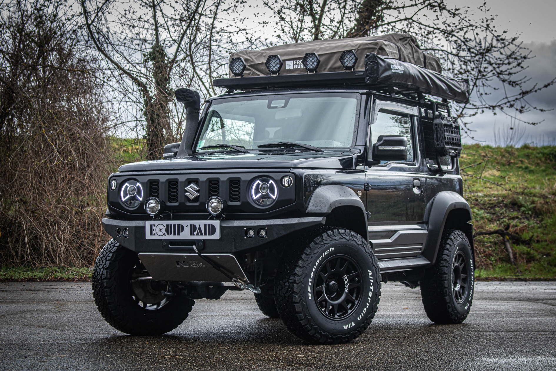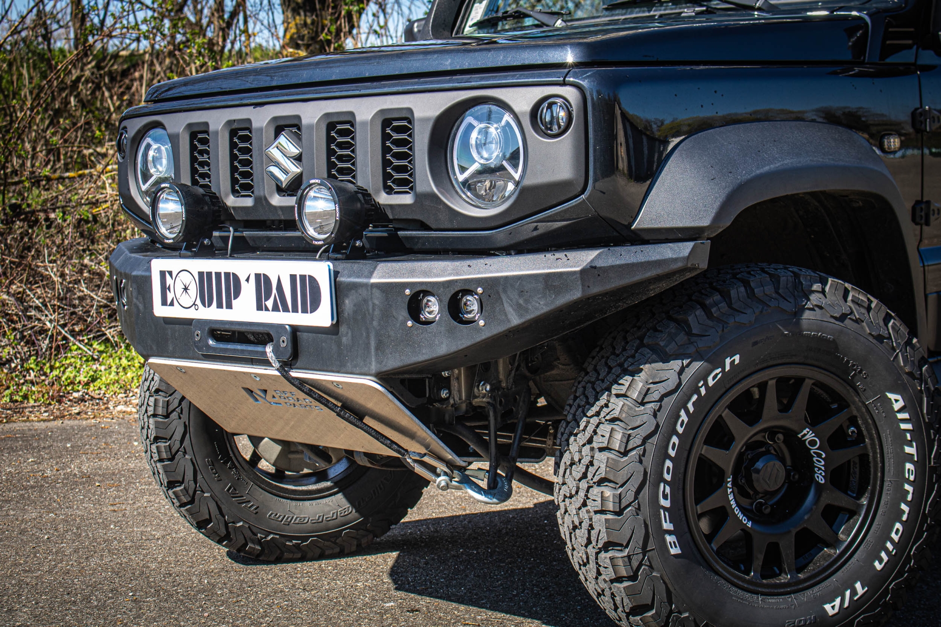 Spécialement développé pour le Suzuki Jimny 1.5VVT modèle à partir de 2018 ce pare-chocs avant est fabriqué par N4-Offroad qui offre grâce à ses angles étudiés une ligne plus dynamique et améliores de manière significative les capacités en franchissement. Pour un confort de conduite en Off-Road il est pourvu de plusieurs emplacements pour recevoir un éclairage Led performant au niveau des extrémités avec jusqu'à 4 Led et sur le dessus une rampe Led de 29 cm . La platine de treuil est directement intégrée et boulonner à la fois au chassis et au pare choc permet l'installation d'un treuil jusqu'à 3.6 Tonnes . Il est aussi prévus en Option un ski de blindage avant en aluminium de 8mm qui vient protéger l'ensemble inférieur de manière sûre et efficace.