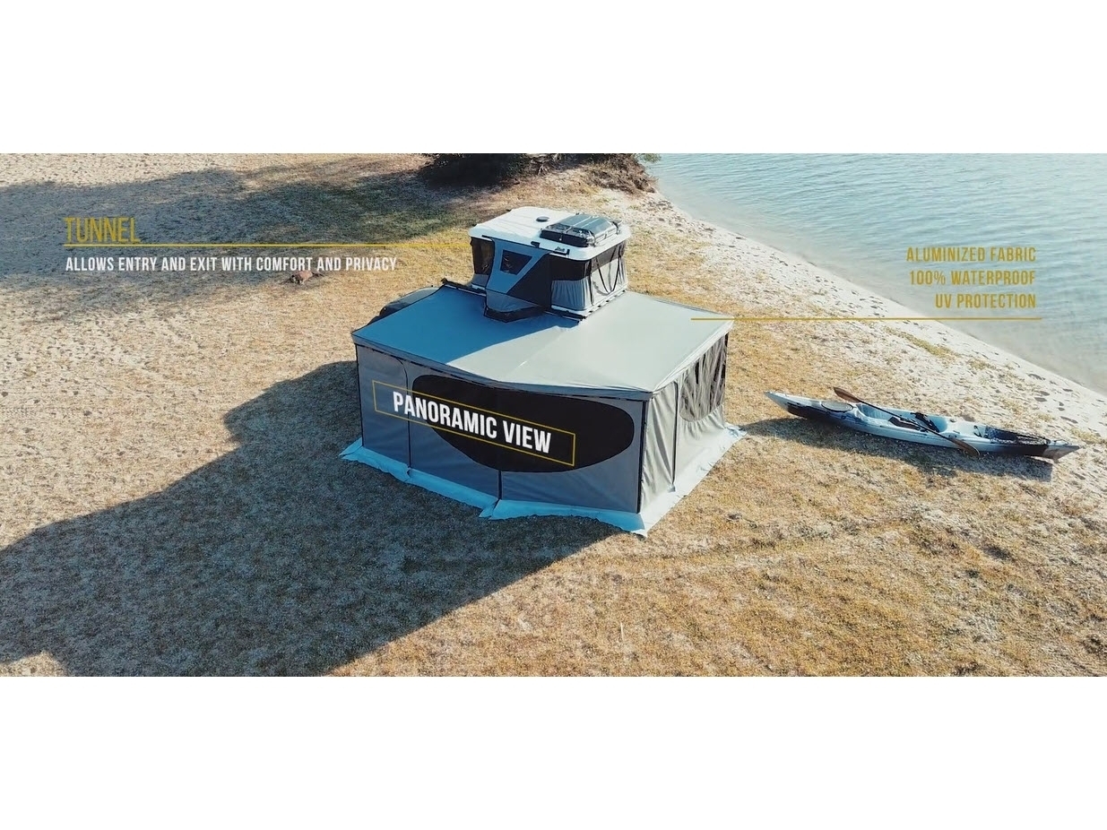 Cet auvent vous permet d'aménager votre espace de vie en fonction de tous les types de climats et d'avoir accès direct au véhicule à l'intérieur de l'auvent.