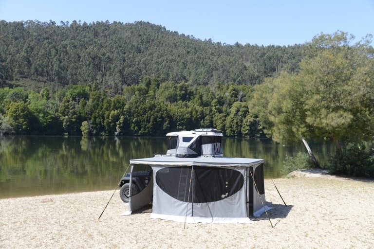 Cet auvent vous permet d'aménager votre espace de vie en fonction de tous les types de climats et d'avoir accès direct au véhicule à l'intérieur de l'auvent.