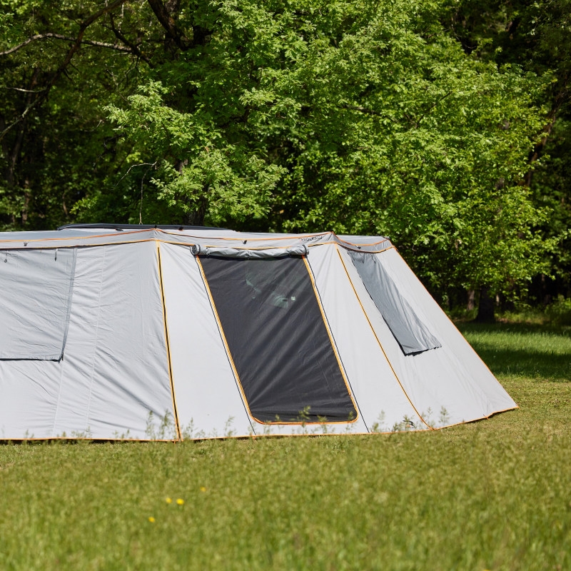 Agrandissez votre espace de vie et améliorez votre confort grâce aux murs pour auvent Rockalu 360° entièrement modulable.