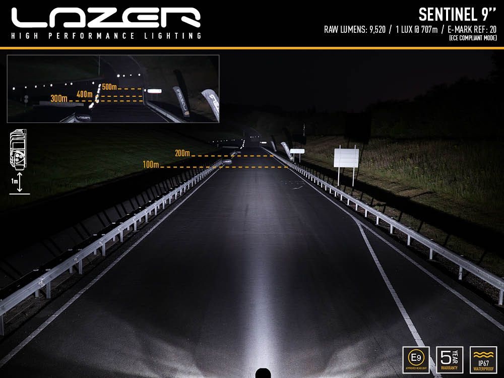 Symbolique de la puissance d'éclairage exposée, fonctionnant à 100 %, les lampes dépassent les réglementations des feux de route CEE-ONU, de sorte que les feux Standard et Elite adoptent la technologie E-Boost à double sortie de Lazer grâce à laquelle le retrait du capuchon Boost fourni à l'arrière de la lampe réduit le la puissance lumineuse doit être dans la limite du règlement 148, permettant l'utilisation des feux à côté des feux de route standard de votre véhicule.