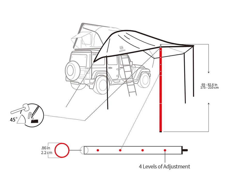 Ces piquets permettent de transformer les portes de la tente annexe en auvents.