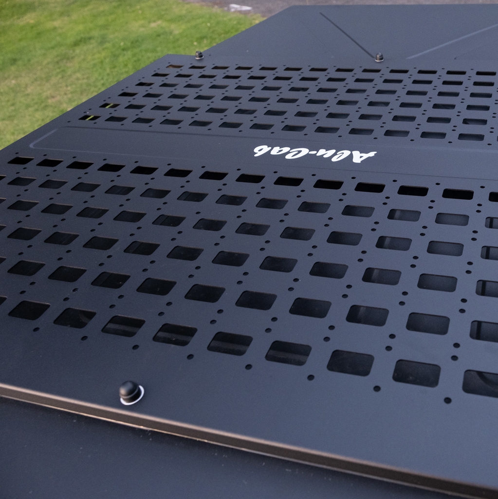 Avec la plaque de chargement "MOLLE" vous pouvez porter un poids de 50 kg (sans ouvrir la tente) et l'ouvrir avec un poids de 18 kg. Vous pouvez également attacher divers accessoires tels que des porte-cannes à pêche, des porte-échelles, des sangles de planche de surf, etc.
