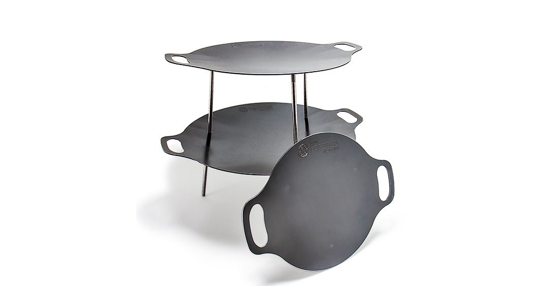 La plaque de cuisson est tout sauf encombrante, car les supports d'une longueur de 23 cm sont très faciles à dévisser. Vous pouvez ainsi la ranger dans un sac et l'emporter. D'ailleurs, sans les pieds, le brasero s'utilise aussi avec le Petromax Atago.