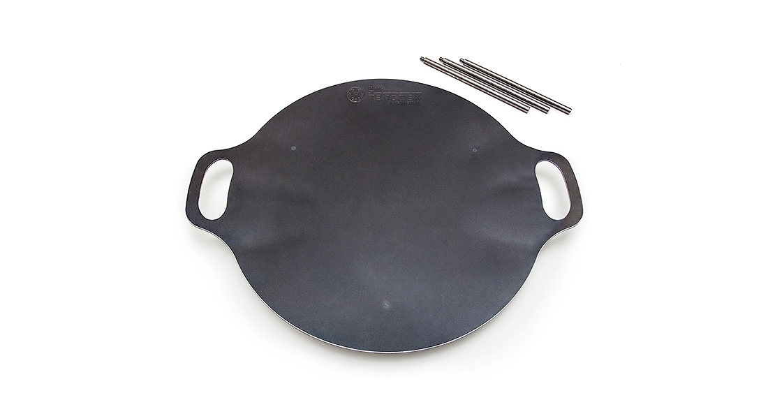 Avec les trois supports, la plaque de cuisson et brasero tient bien sur un feu ouvert. Au centre, elle devient plus chaude que sur les bords, et vous pouvez ainsi garder au chaud les steaks, pâtisseries et autres mets, tandis que les légumes cuisent encore au milieu. Avant la première utilisation, la plaque de cuisson doit être culottée de façon à ce qu'une patine se forme à chaque usage, assurant un effet antiadhésif naturel. Une fois culottée, la plaque est très vite brûlante et vous pouvez tout de suite commencer à faire griller vos aliments.