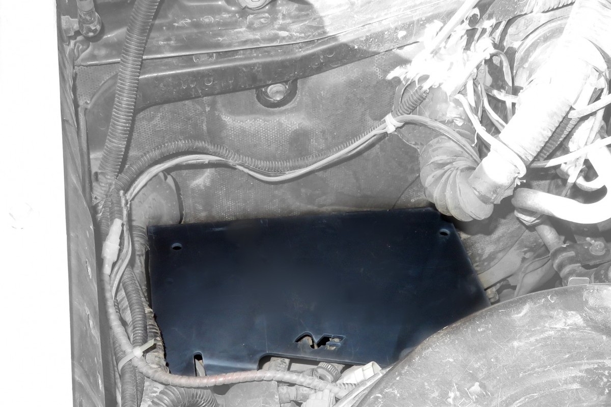 Elle permet l'installation d'équipements (Compresseur, batterie, ...) ou rangement dans le compartiment moteur entre le filtre à air et le tablier.