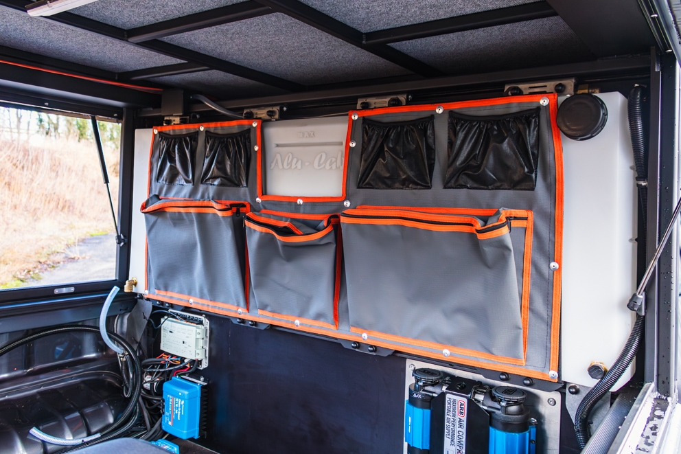La pochette de rangement est un accessoire supplémentaire pour le réservoir d'eau (AC-A-CC-WT-KIT). Elle est montée à l'arrière du réservoir d'eau de 50 L et est fixé aux fixations du réservoir par des rivets. Cela permet un accès facile à l'intérieur du Canopy Camper ou à travers les portes latérales.