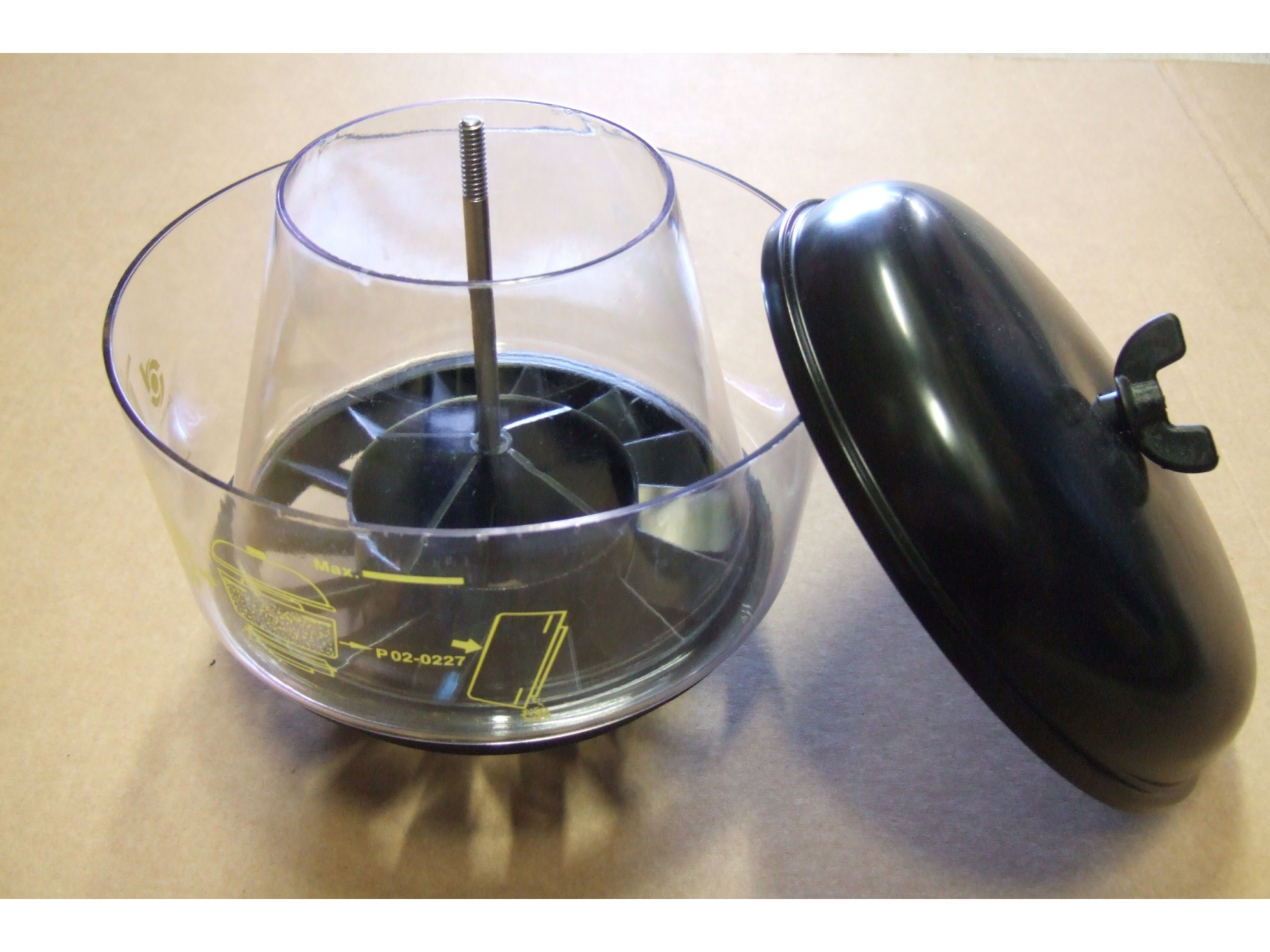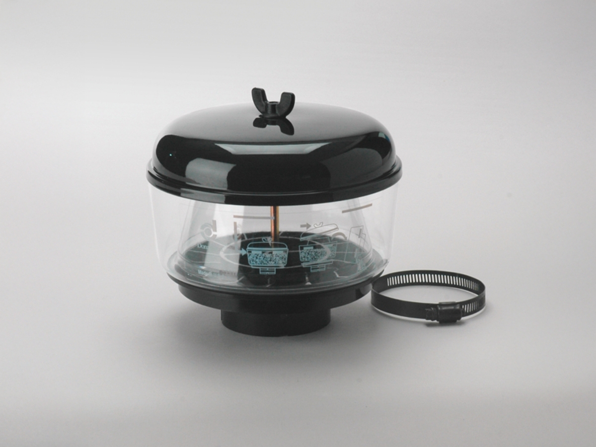 L’air chargé en particules est mis en rotation à l’intérieur du préfiltre. Les impuretés sont séparées par effet centrifuge et collectées dans le bocal plastique, évitant ainsi qu’elles n’atteignent le filtre principal du moteur.