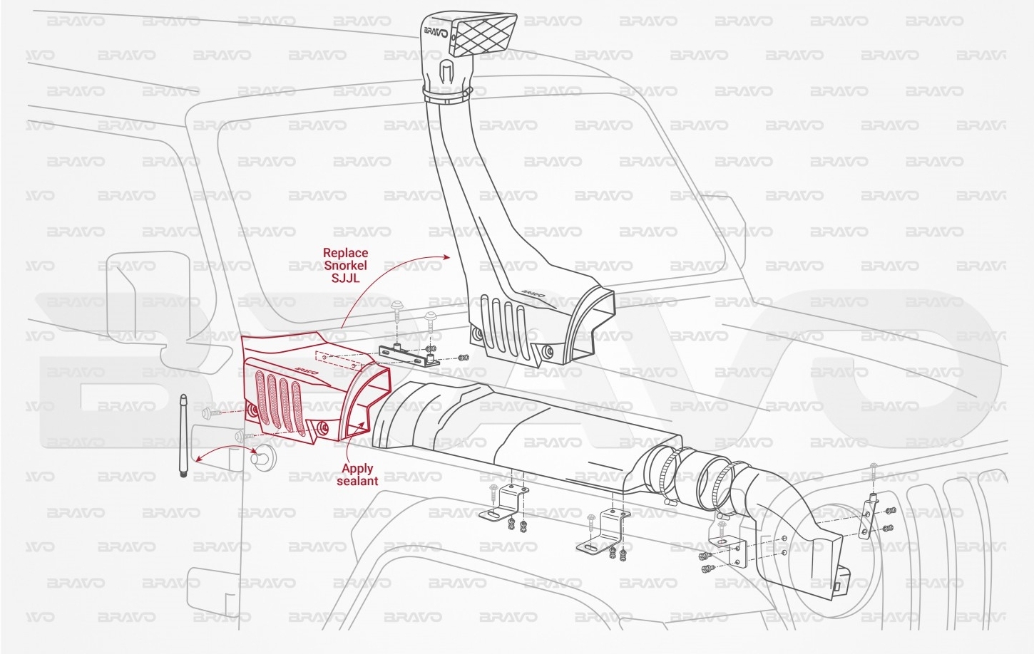 prise d'air déportée pour le montage du snorkel Bravo pour la Jeep Wrangler JL