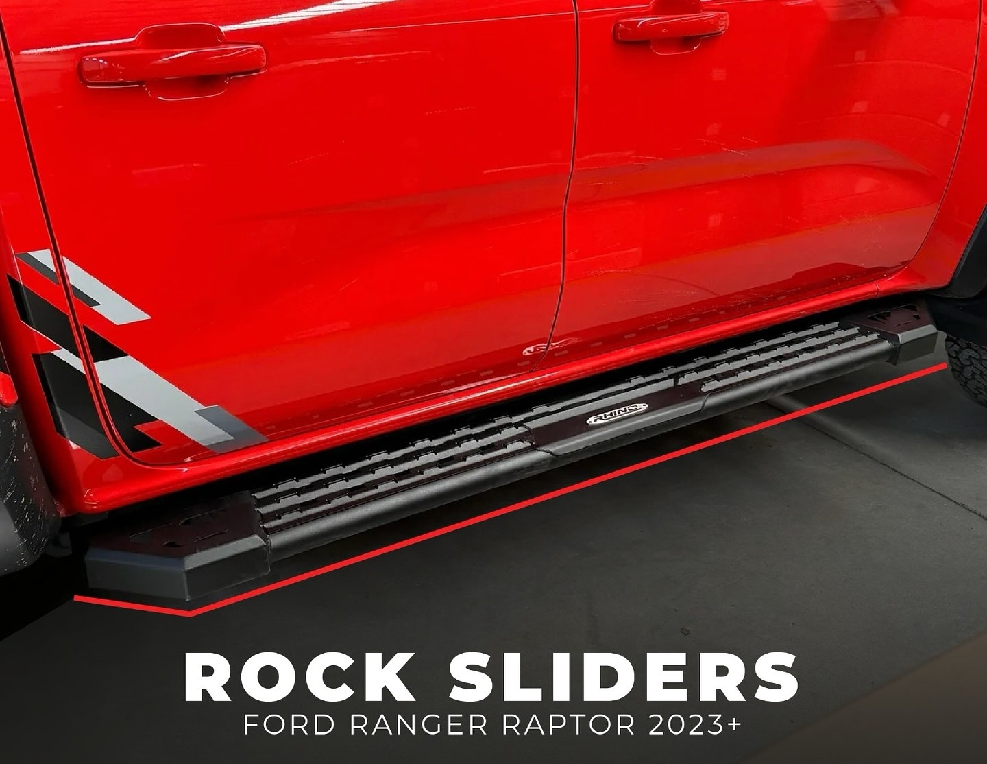 Les protections bas de caisse / marche-pieds de rock Rhino 4 × 4 sont en acier de 3 mm d’épaisseur recouvert de peinture noir époxy pour plus de durabilité.