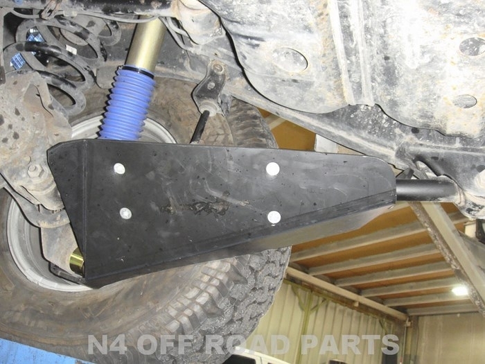Lorsque les amortisseurs arrières sont positionnés devant le pont, ils sont particulièrement exposés aux projections du train avant. Des projections qui peuvent provoquer des dégâts assez important tant au niveau des amortisseurs qu’au niveau de leur fixation. D’autres part, ces amortisseurs et tirants de pont arrière s’accrochent facilement lors des franchissements. N4-Offroad a développé des skis/déflecteurs d’amortisseurs réalisés en polyéthylène haute densité de 8mm d’épaisseur. Ils facilitent le passage et protègent les amortisseurs sans altérer le refroidissement de ces derniers.