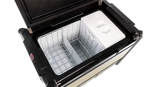 - Deux zones de refroidissement contrôlées indépendamment. Comprend un séparateur de compartiment amovible (blanc) et un couvercle interne, retirez-les pour créer une seule zone réfrigérateur ou congélateur et récupérez 4L d'espace.