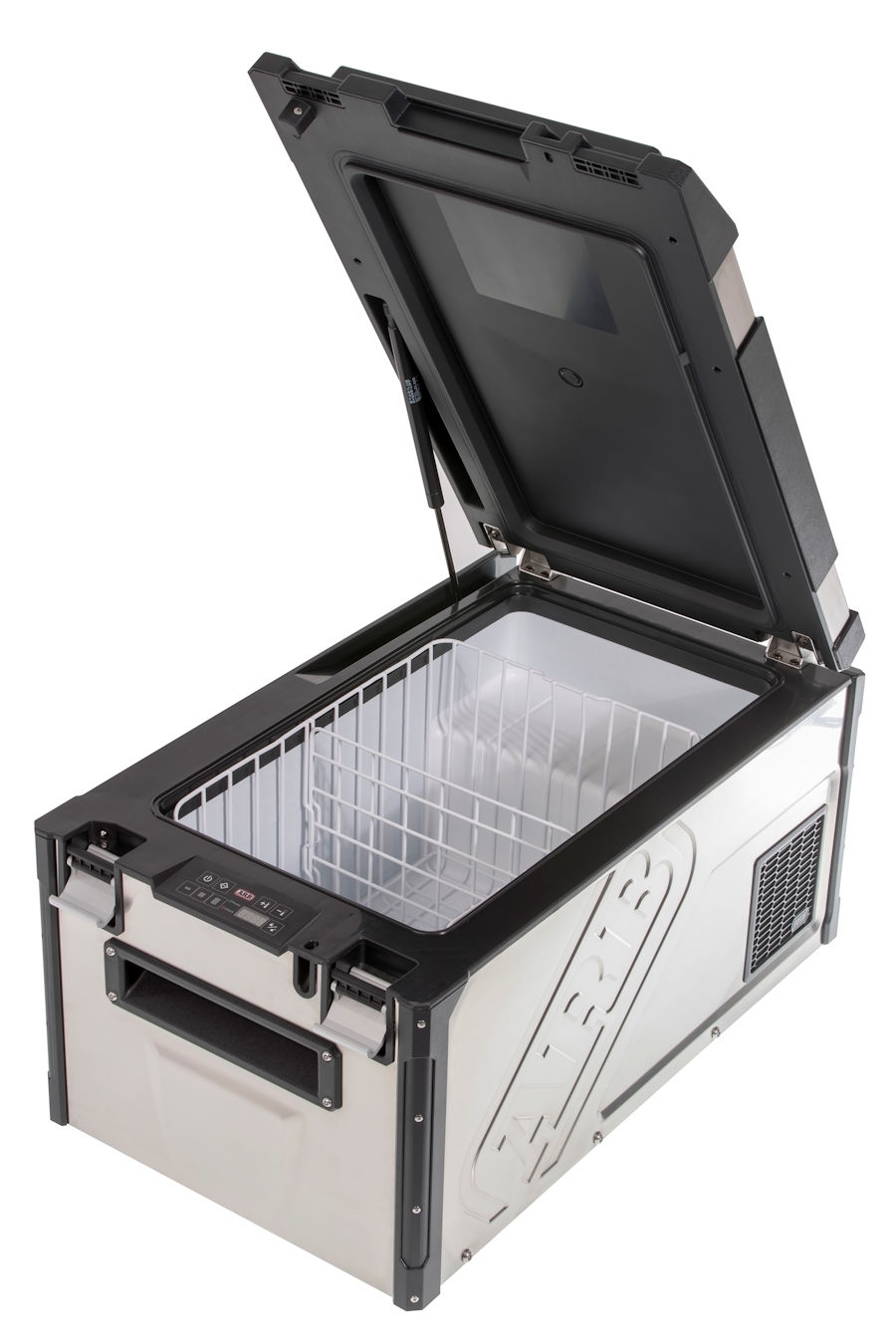 En plus de son extérieur robuste en acier inoxydable, des loquets en aluminium anodisé ce congélateur portable 4WD ou de camping dispose d'un couvercle muni d’un vérin à gaz, ce qui vous évite de devoir tenir le couvercle lorsqu’il est ouvert.