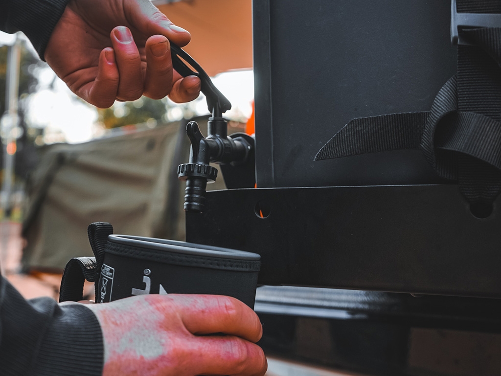 - Le robinet peut être utilisé en combinaison avec le kit de tuyau d’eau de Front Runner.