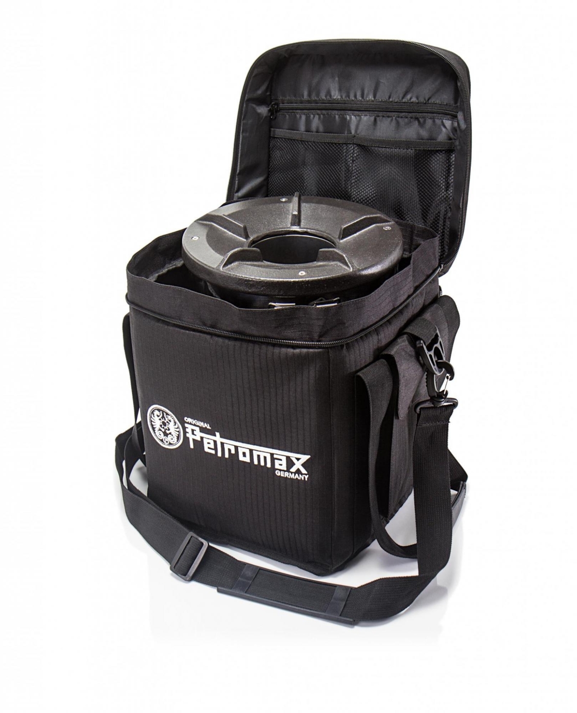 Le sac, avec ses parois et son fond renforcés, offre une solution sûre pour le transport du Poêle fusée rf33. Le robuste tissu ripstop matelassé sur lequel est brodé la logo Petromax apporte une stabilité supplémentaire. Les deux anses et la sangle amovible sont particulièrement renforcés et apportent un grand confort lors du transport. Les accessoires peuvent être casés dans des poches en filet à l'intérieur du rabat ou dans les poches extérieures à velcro.
