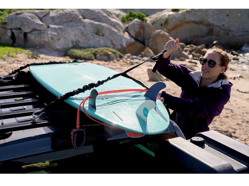 Attachez vos charges de manière simple et efficace. La Stratchit absorbe la tension. Pensez au Stratchit comme sangle à cliquet extensible. Attachez simplement les extrémités et serrez la sangle à la main. Voilà une manière rapide et remarquablement efficace.