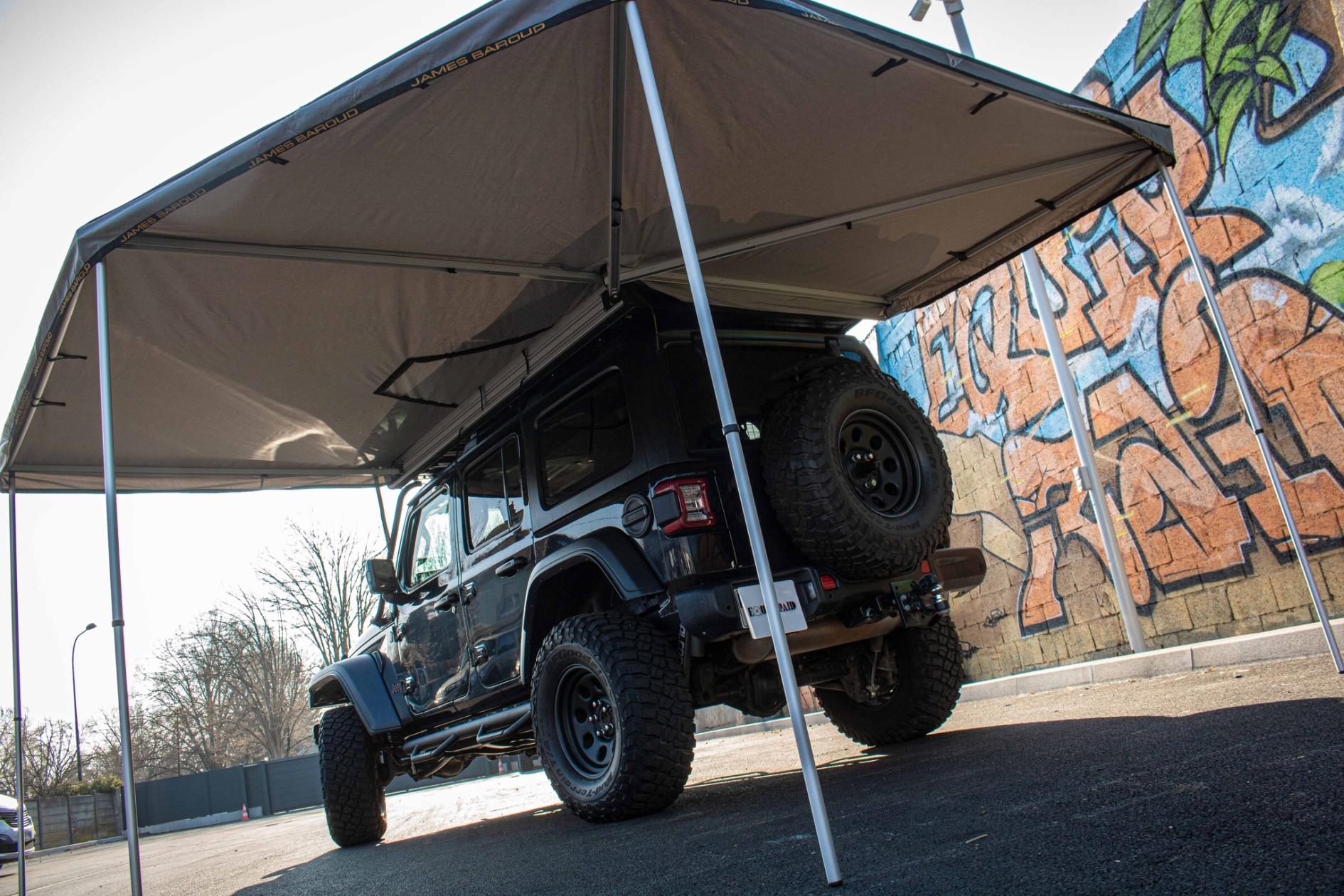 Le store James Baroud Falcon 250, est un store autoportant de 270° avec un passage tunnel intégré pour l'accès à votre tente James Baroud.