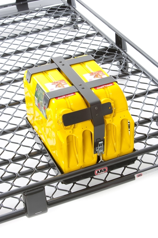 Le support ARB se fixe sur la galerie de toit de votre 4x4 et peut accueillir deux jerrycans.