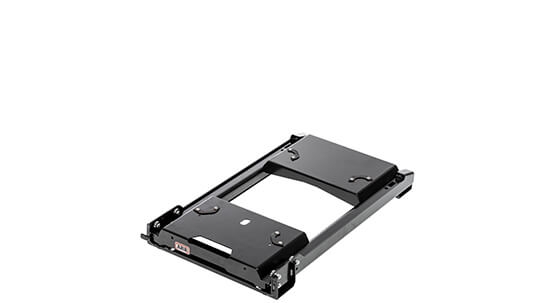 Le loquet de verrouillage à dégagement rapide peut être positionné sur le côté gauche ou droit de la glissière pour une utilisation facile