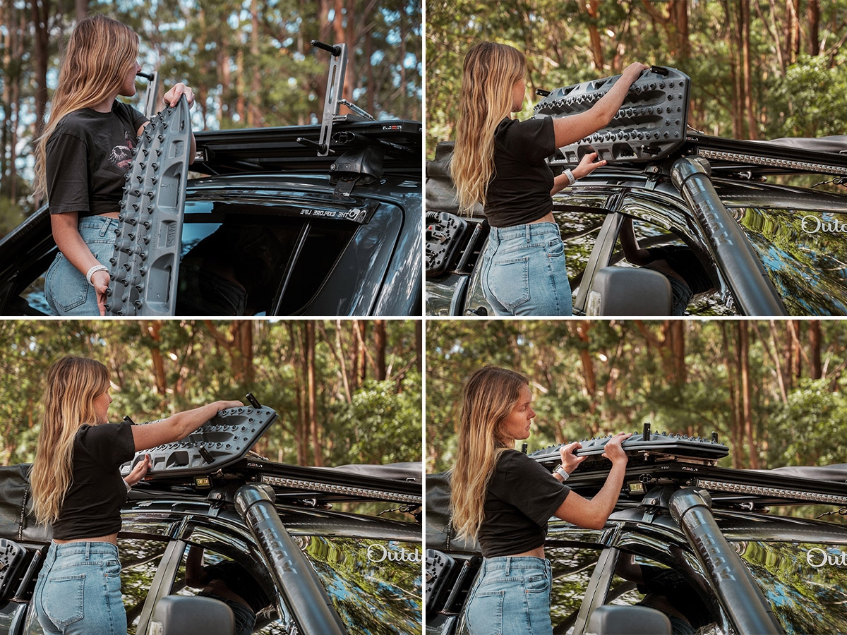 Grâce à leur conception universelle, ils sont compatibles avec les principales galeries de toit plates, comme les systèmes Rhino Rack Pioneer, Yakima, ARB Base (avec adaptateurs) ou Rola Titan. Leur structure modulaire permet également de fixer sans effort les principales plaques de désensablage du marché, telles que Maxtrax ou Tred.