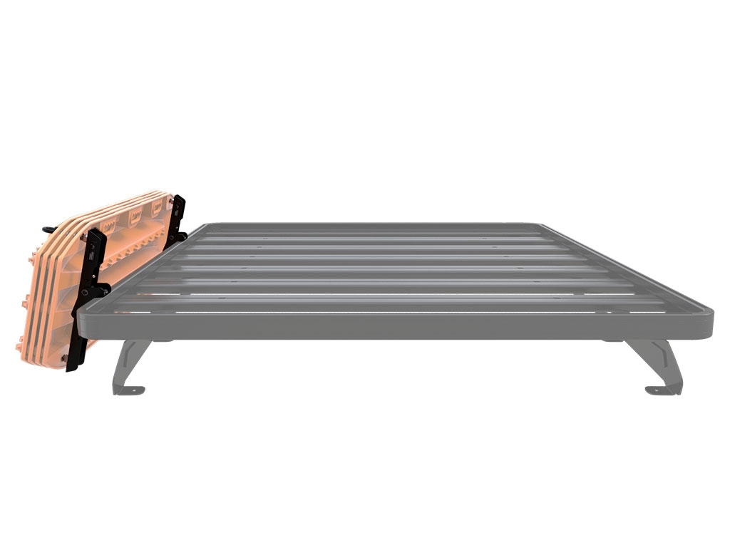 Ces supports permettent de monter les plaques MaxTrax, TRED pro et d’autres plaques de franchissement avec des trous, de manière sécurisée sur le profile latéral de la galerie Slimline II de Front Runner.