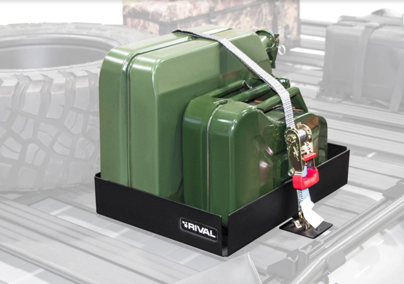 SUPPORT JERRYCAN DOUBLE - AVEC SANGLES DE FIXATION POUR GALERIE DE TOIT RIVAL