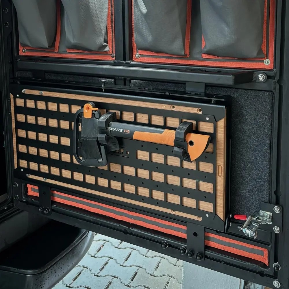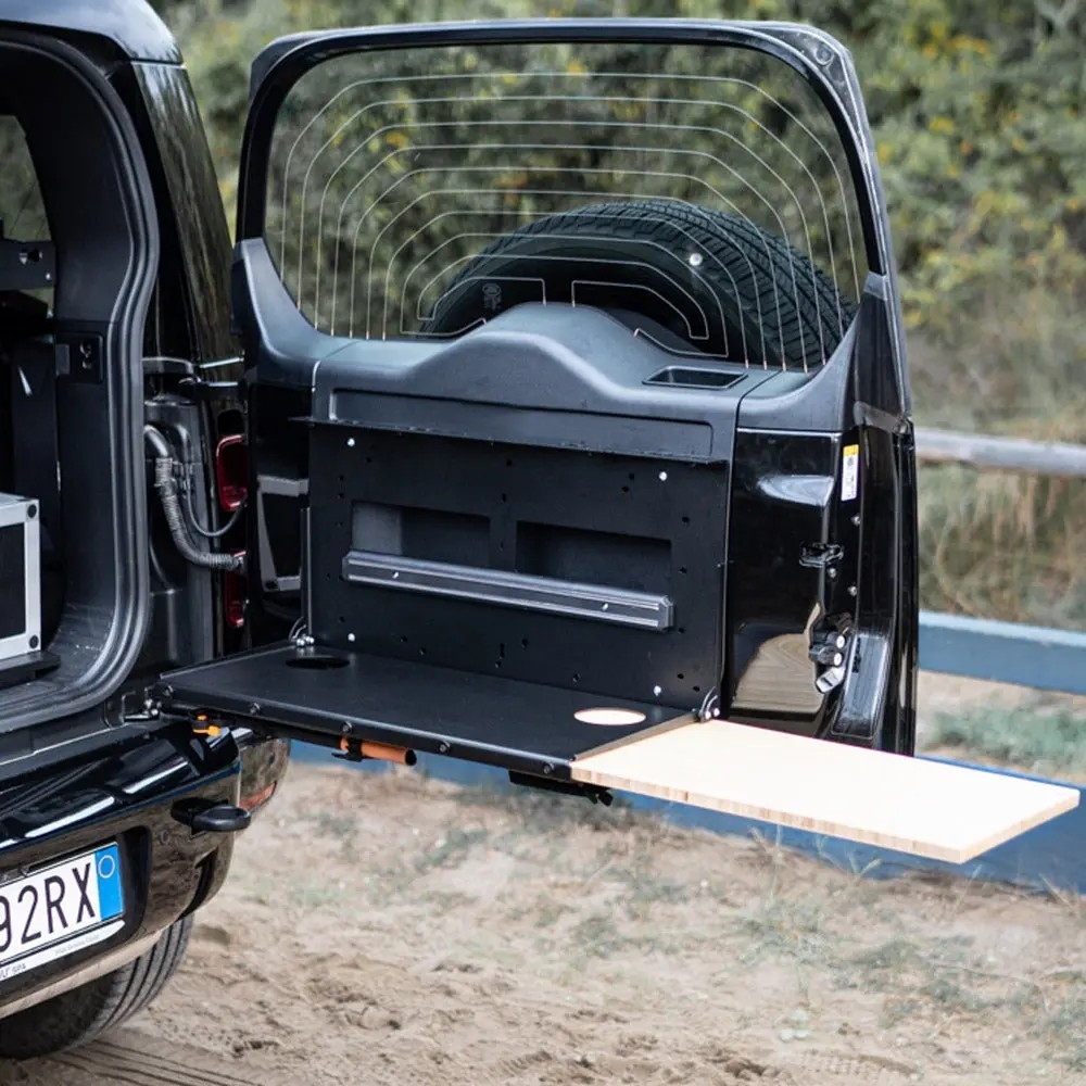 Equip’raid présente cette table de hayon haute résistance, conçue pour transformer la porte arrière de votre véhicule en une station de travail ou de préparation culinaire ergonomique. Fabriquée en Italie, cette solution technique répond aux exigences des raidmen cherchant à optimiser l'espace de chargement tout en garantissant une fiabilité absolue sur piste.