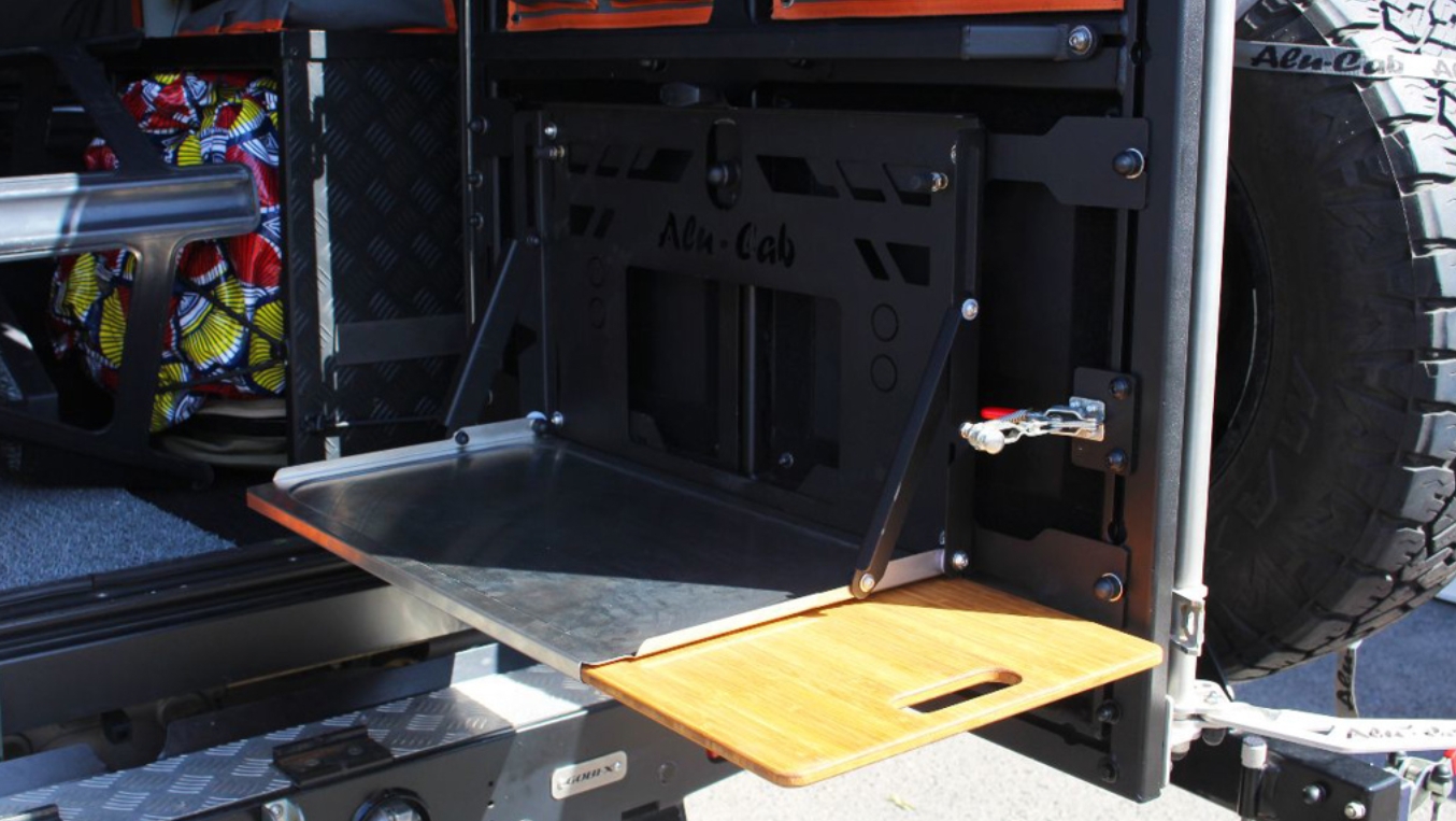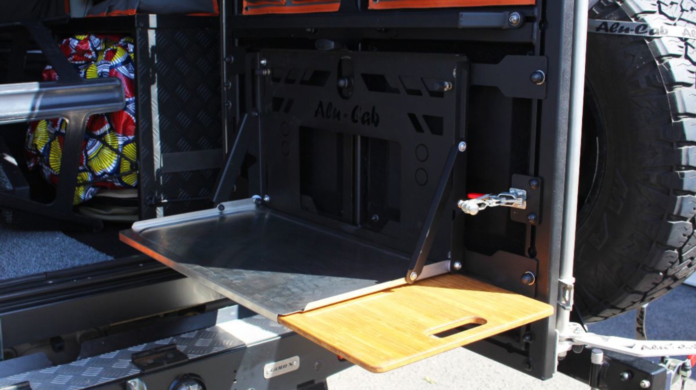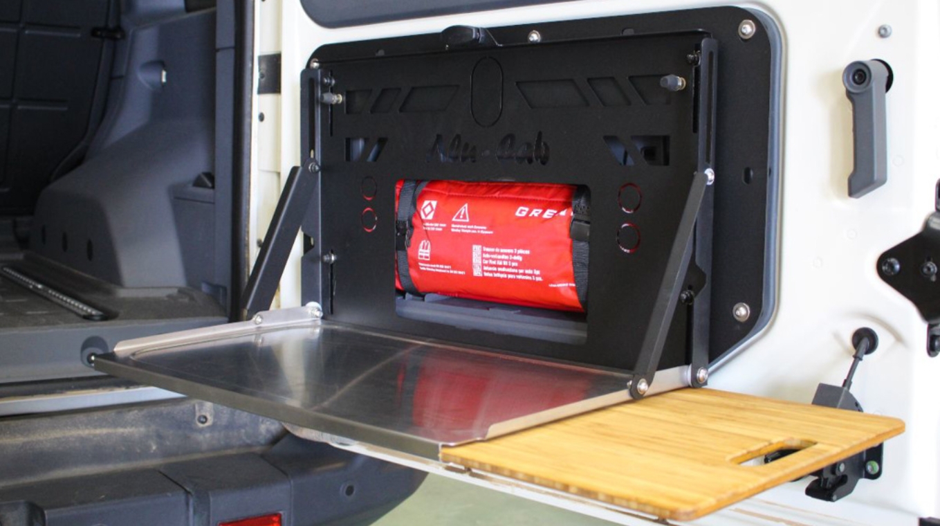 Élargissez votre expérience extérieure avec la tablette pliante Alu-Cab pour la porte arrière.Conçue pour le confort et la durabilité, cette table polyvalente s'intègre parfaitement à votre configuration Alu-Cab et offre une surface pratique pour la préparation des repas, les activités de camping ou un espace de travail pratique.Avec la tablette pliante, vous avez un accès direct à votre planche à découper.Vous n'avez pas besoin d'une table séparée ni d'une surface plate et vous disposez immédiatement d'une surface de travail stable pour diverses tâches.La tablette pliante Alu-Cab est ingénieusement construite et présente une conception intelligente et peu encombrante pour maximiser la fonctionnalité de votre équipement.Lorsqu'elle n'est pas utilisée, elle peut être pliée pour gagner de la place.