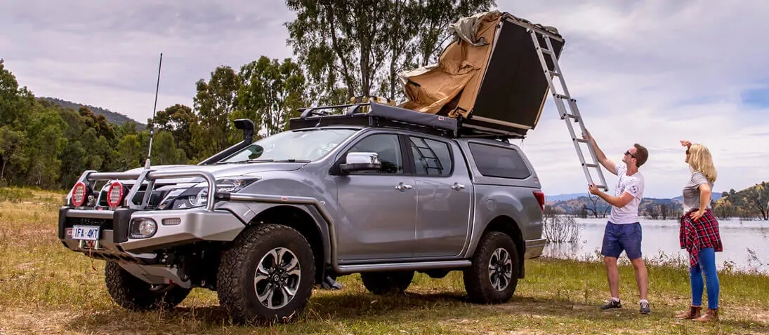 En plus d'être esthétique, elle est très pratique puisqu'elle se déplie en quelques minutes. La tente de toit offre de plus un espace de couchage hors sol et protège les occupants des intempéries.