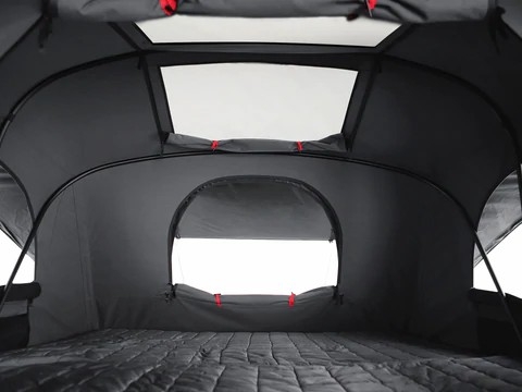 - Fenêtres/portes de tous les côtés de la tente ainsi qu'un un double Velux Skyview qui offrent des vues panoramiques.