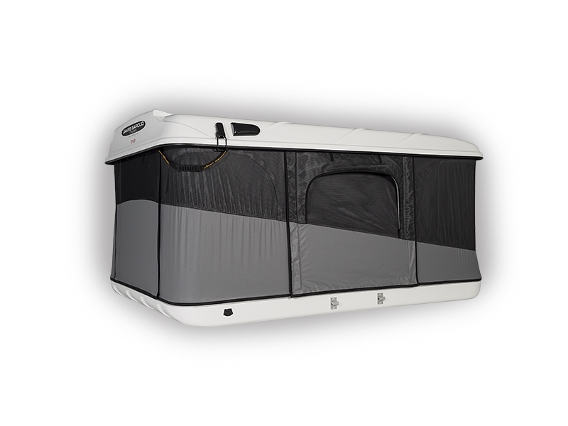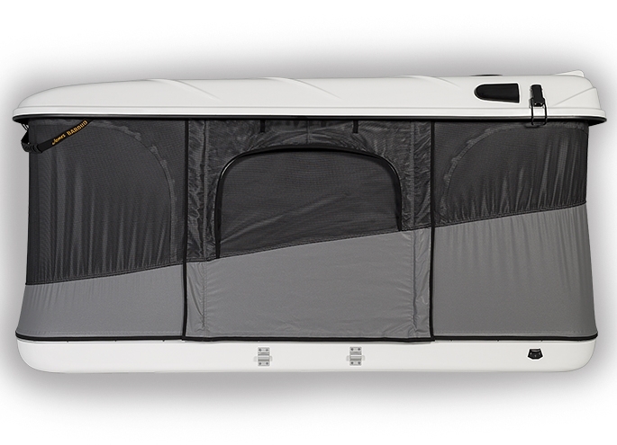 La toile est montée sur des câbles insérés dans des glissières en aluminium, galbées vers l’extérieur des coques (afin d'éviter les infiltrations), pour faciliter son démontage ou pour utiliser la tente comme un coffre de toit.