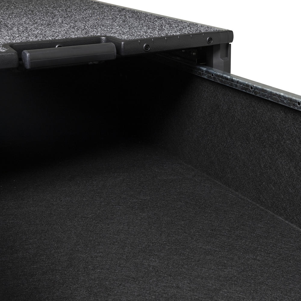 - Le plateau coulissant est conçu pour accueillir un réfrigérateur, facilitant l'accès en le tirant hors du véhicule. En l’absence de réfrigérateur, le dessus reste parfaitement plat, maximisant l’espace de chargement.