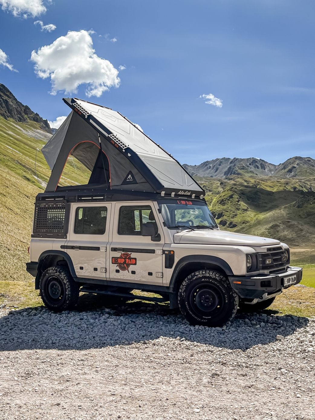 Le toit relevable ou chambre de toit Alu-Cab SILENUS transforme votre Ineos Grenadier en veritable maison roulante !