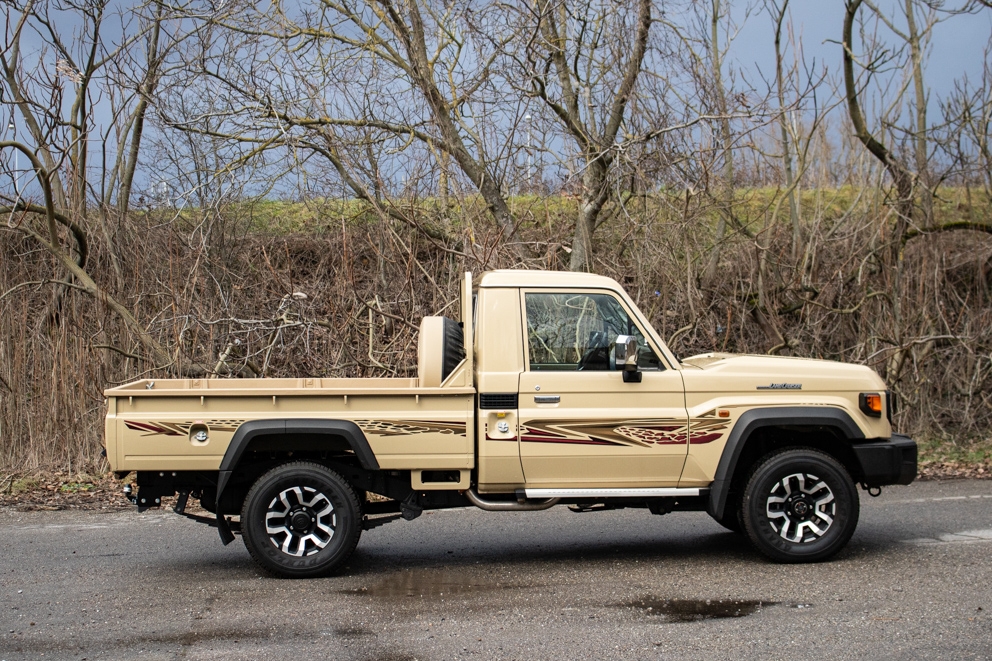 Le Toyota Land Cruiser GDJ79 Simple Cab est un pick-up tout-terrain robuste doté d’un moteur 2.8L Turbo Diesel de 206 ch et 500Nm de couple, associé à une boîte automatique 6 rapports. Homologué Euro 6de, en catégorie N1 – 2 places CTTE, il bénéficie de nombreux avantages : sans malus, sans TVS, et TVA récupérable. Connu pour sa fiabilité et ses capacités de chantier, de travail ou de raid, il offre une forte capacité de charge et une excellente traction.