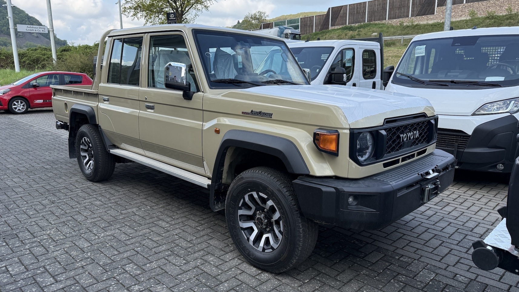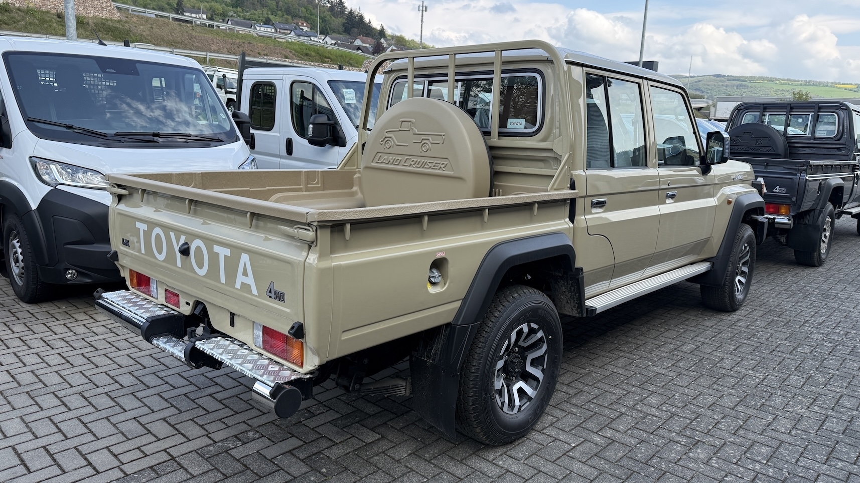 Le Toyota Land Cruiser GDJ79 Double Cab est un pick-up tout-terrain robuste doté d’un moteur 2.8L Turbo Diesel de 206 ch et 500Nm de couple, associé à une boîte automatique 6 rapports. Homologué Euro 6de, en catégorie N1 – 4 places CTTE, il bénéficie de nombreux avantages : sans malus, sans TVS, et TVA récupérable selon activité. Connu pour sa fiabilité et ses capacités de chantier, de travail ou de raid, il offre une forte capacité de charge et une excellente traction.