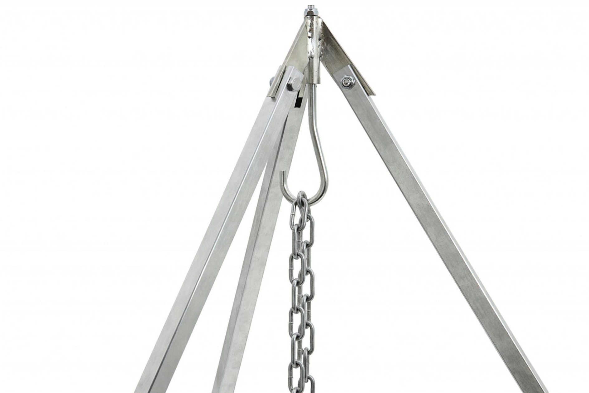 Le trépied de suspension Petromax permet de perfectionner la cuisine en plein air. On peut suspendre simplement et en toute sécurité au crochet un gril ou la marmite Petromax. Grâce à sa chaîne réglable en hauteur, la cuisine sur feu devient une expérience particulièrement agréable. Les extrémités biseautées assurent un maintien stable du trépied sur différents types de sols. Chaque pied est de plus réglable en hauteur et en continu afin d’équilibrer facilement le trépied lorsque la surface du sol est inégale.