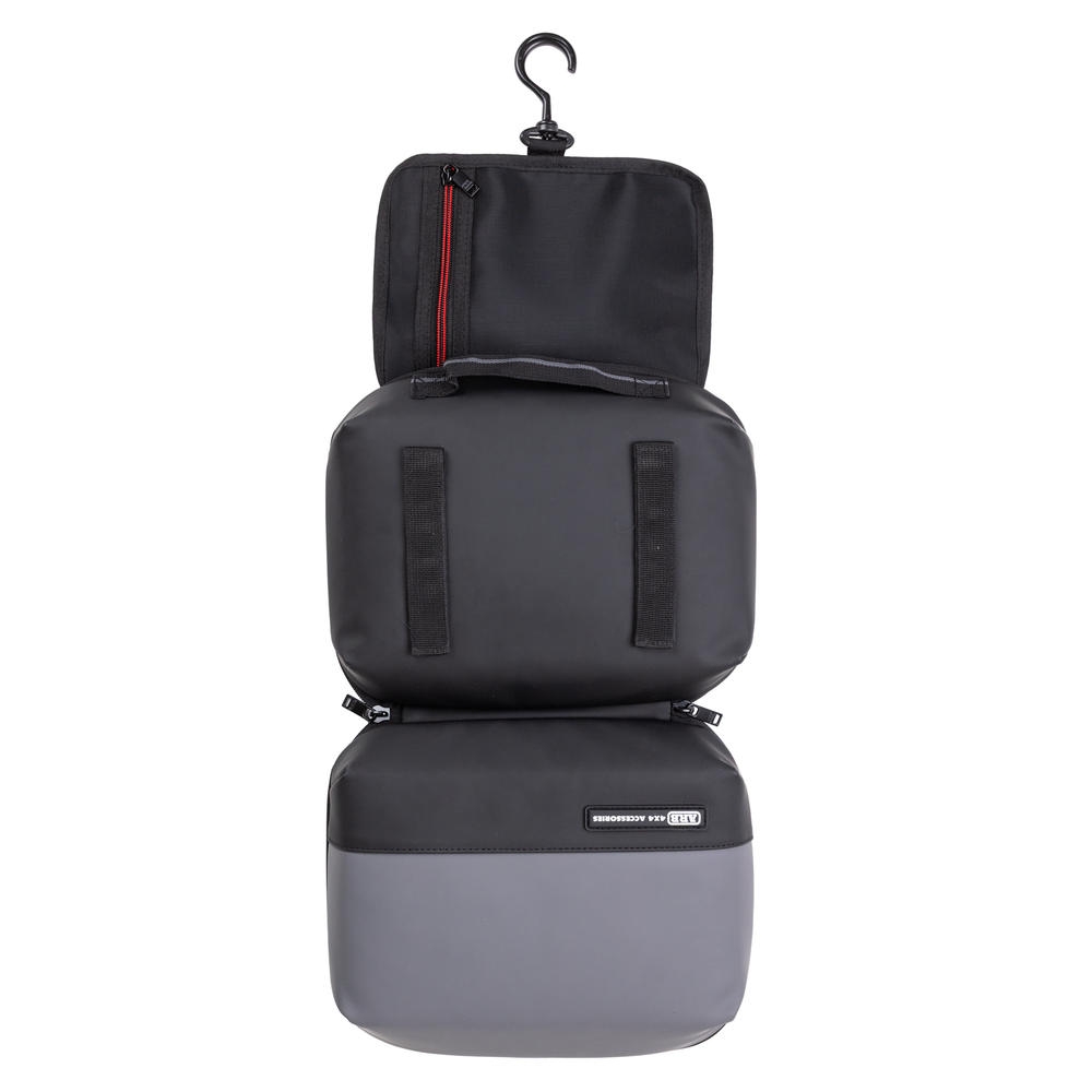 Organisation Sécurisée : Les élastiques intégrés dans les poches et les multiples compartiments zippés assurent le maintien et la séparation des articles pendant le transit.