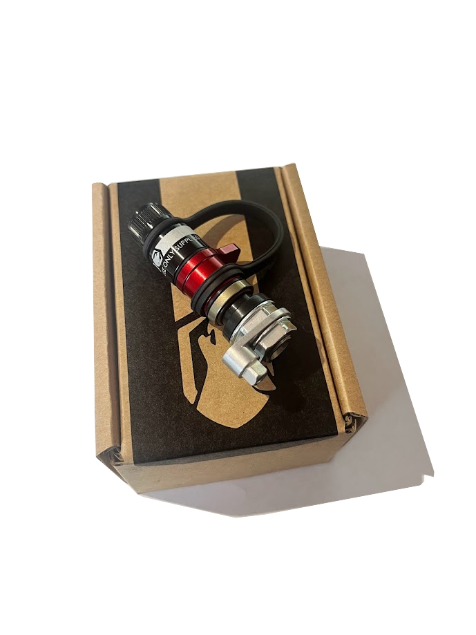 Une fois vos pneus dégonflés et la colerette re-baissée, le bouchon de valve en aluminium sécurise la valve et la colertte.