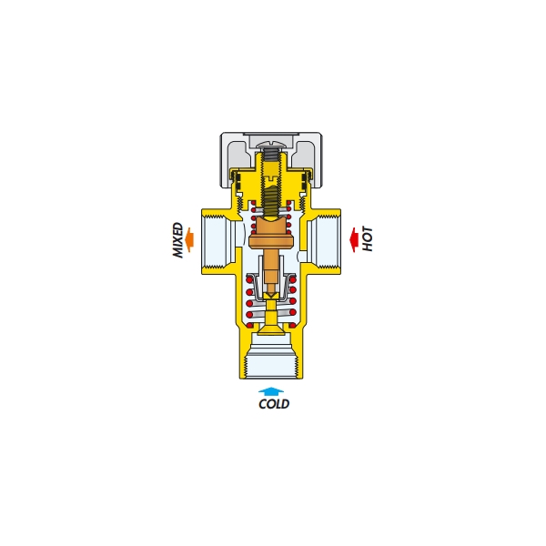 La vanne thermostatique CALEFFI s'installe en sortie de tout type de chauffe-eau : ballon d'eau chaude, échangeur à plaque. La vanne maintient la température de l'eau à maximum 48°C afin de limiter les risques de brulure & les pertes calorifiques