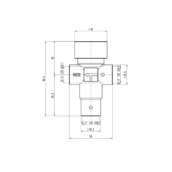 Le mitigeur thermostatique peut fonctionner pour des faibles débits à partir de 5 l/min jusqu'à 21 l/min. Pour la connexion sur le circuit d'eau, la raccordement se fait à l'aide de raccord cannelé mâle.