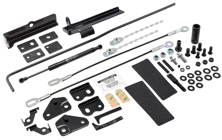 Chaque kit est livré avec le matériel spécifique au véhicule, y compris des supports de montage et des câbles de hayon de remplacement et des supports de guidage, le cas échéant.