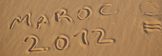 Aujourd'hui « grasse mat », enfin c'est bien relatif car il ne faudrait pas manquer le briefing de 9h00 après le petit-déjeuner. Au programme de cet après-midi : les dunes de l'erg Chebbi à Merzouga ! Les conseils sont donc précieux si on ne tient pas à manier en permanence un élément essentiel en raid : la pelle. Partis après le déjeuner, et après quelques km de piste seulement, elles apparaissent au loin majestueuses, fascinantes, magiques; les dunes sont là devant nous. L'approche se fait dans le silence dans notre voiture, cette masse de sable orangé impressionnante qui change de couleur, qui joue avec la lumière et l'ombre impose le respect. De plus près elles sont encore plus grandioses, envoûtantes et c'est à leurs pieds que nous « dégonflons ». Les premières voitures suivent l'ouvreur et déjà l'une ou l'autre se plante ce qui nous offre un vaste terrain de jeux et des fous rires. Finalement tout le monde se retrouve au sommet d'une grande dune où nous nous posons dans cette immensité et ce silence face au soleil couchant. La lumière du jour qui baisse, le sable et le ciel qui se teintent d'or et d'ocre, les étoiles qui apparaissent, l'instant est inoubliable.