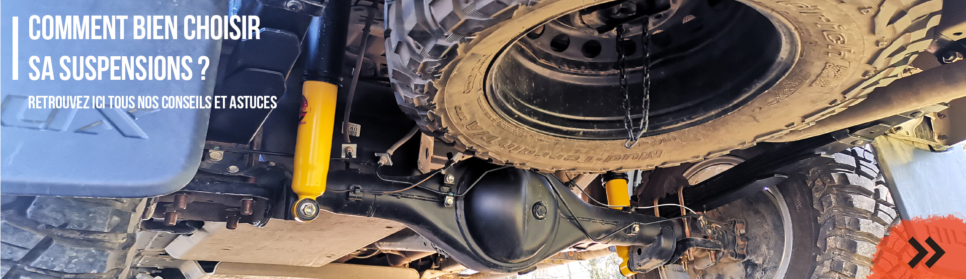Le kit complet de suspension pour 4x4 améliore la stabilité, le confort et l'adhérence sur tous terrains. Conçu pour améliorer la stabilité, l'adhérence et le confort, il inclut amortisseurs, ressorts et autres composants renforcés en fonction de votre véhicule. Chez Equip'Raid, nos kits de suspension pour 4x4 répondent aux exigences des raids et expéditions sur les pistes les plus exigeantes.